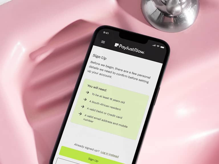 Create a PayJustNow account online in 2 minutes and get instant approval. Protect your app with a security selfie and start shopping on the same day you sign up.